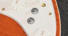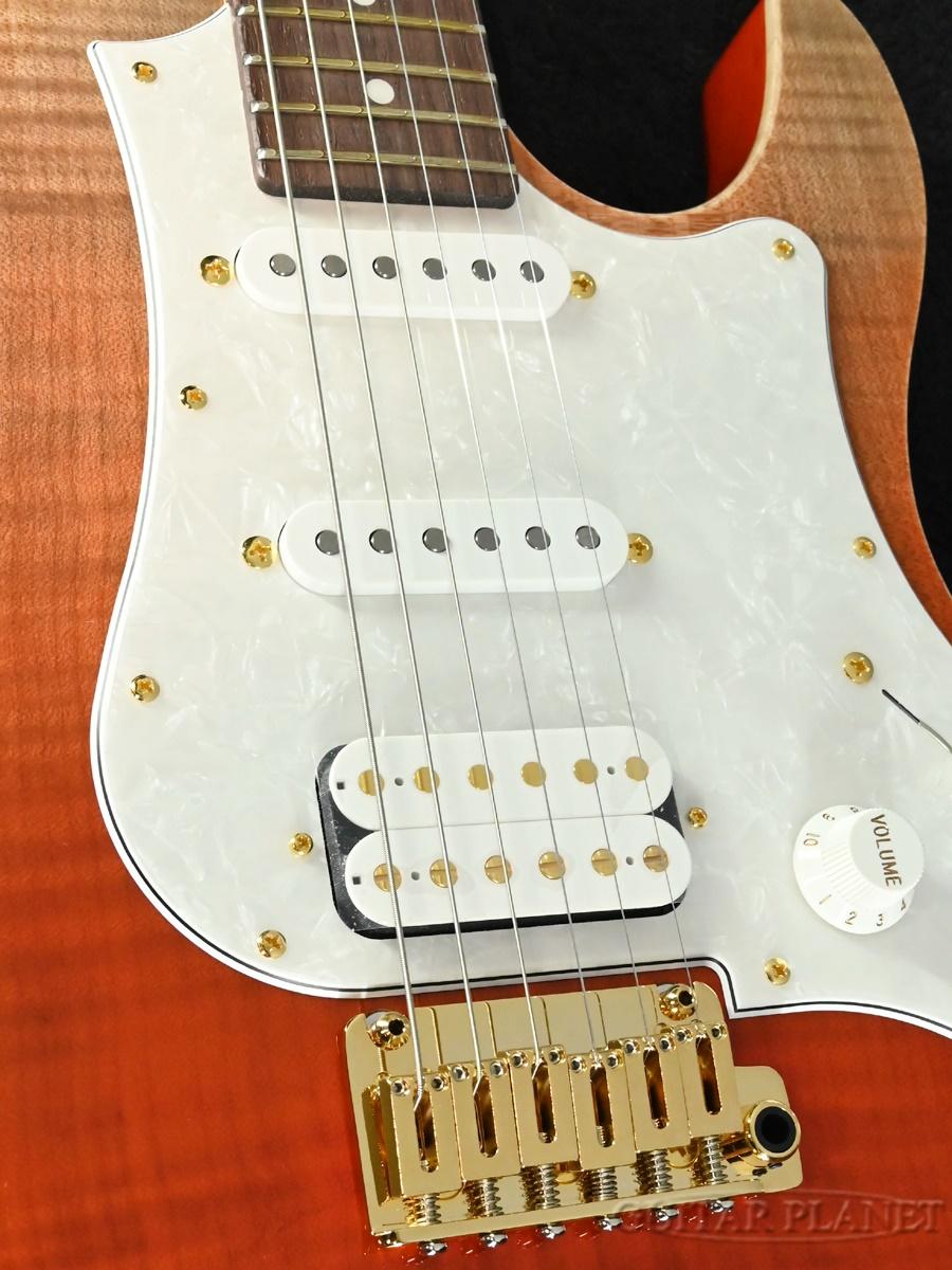 美しいフレイムメイプルのボディトップに、熟れた柿をイメージしたライプ・カキ・グラデーションのカラーリングが映える特別な一本。
