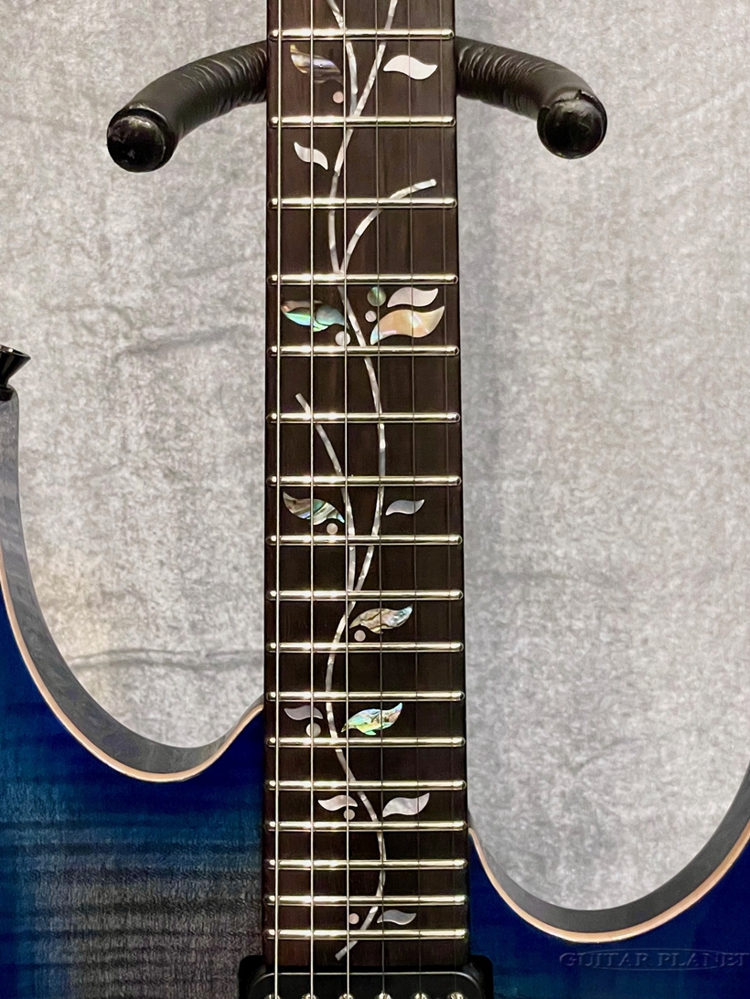 ボディ構造はFlame Mapleをトップに、Alderをバックに採用、Mahoganyバックの多いj.customですが、チェンバード(中空)構造を採用したことにより、Alderでも十分な音の太さが得られており、軽量化にもなっています。1弦側カッタウエイバックに新たにカットを入れ、ハイポジションのプレアビリィティが向上しています。