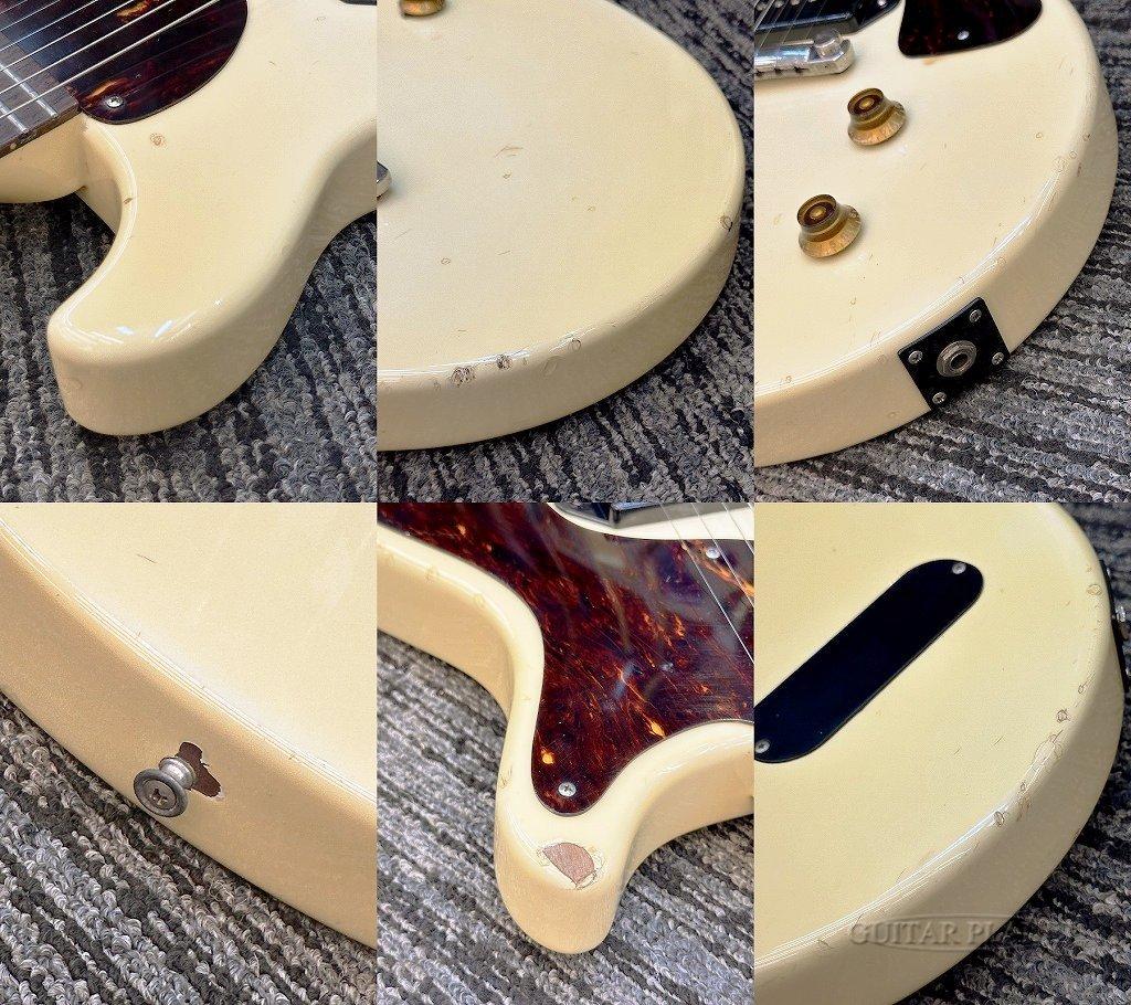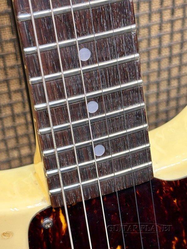カラーはホワイトですが、色焼けにより全体がクリームカラーとなっており、べっ甲タイプのピックガードと相まってヴィンテージ感溢れるルックスとなっています。