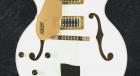 この素晴らしいギターは、ゴールドピックガードとゴールドハードウェアに映えるSnowcrest White仕上げで、誉れ高いそのサウンドを引き立てます。