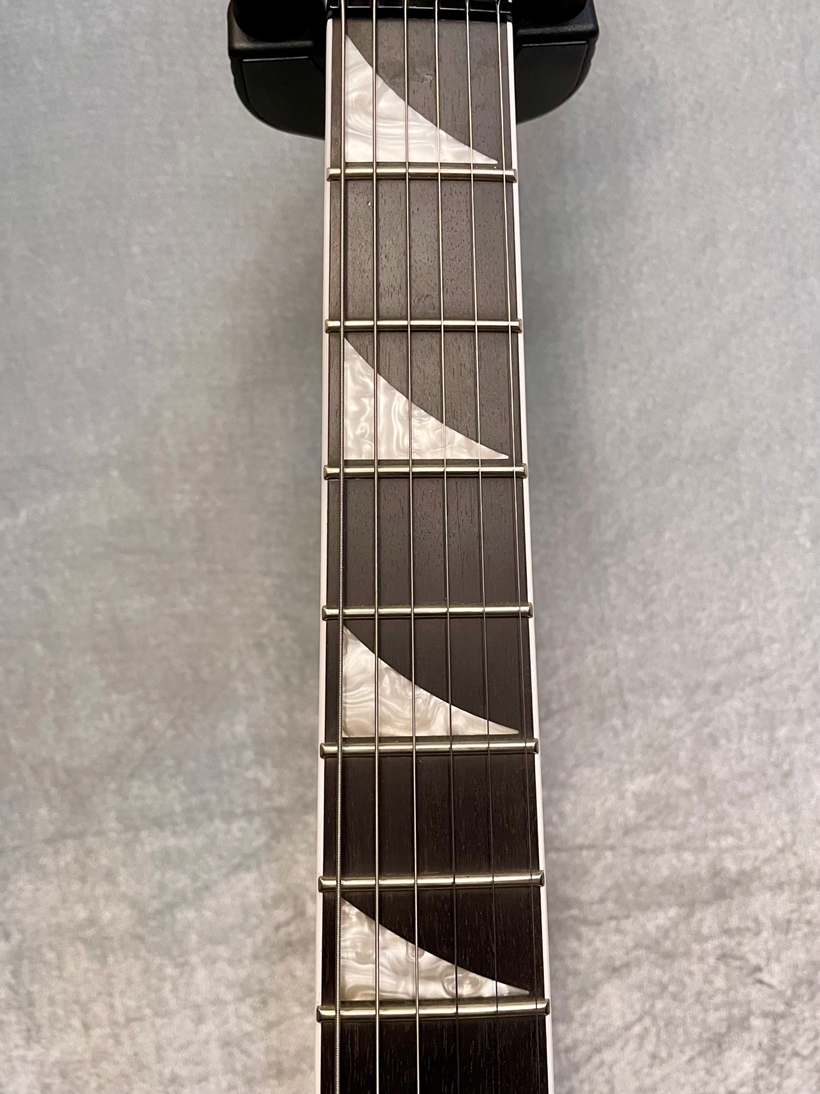 また指板面はこちらも特徴的な12"Rから16"Rへ徐々に変化して行くコンパウンドラディアスを有し、フレットもジャンボサイズを採用しているのでテクニカルなフレーズ等も行いやすいです。