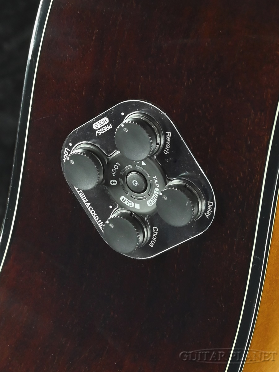 『TAG3 C』は、従来のトランスアコースティックギターの機能をさらに進化させた第2世代となるモデルです。ギター本体は、パワフルなストロークに応えるドレッドノートスタイルで、表板にシトカスプルース(単板)、側裏板にマホガニー(単板)を採用したカッタウェイモデルです。改良したアクチュエーターをさらに1基増設(計2基)したことにより、今まで以上に高品位なエフェクト音と新機能「ルーパー」を実現しました。エフェクトは、従来の「リバーブ」「コーラス」に「ディレイ」を加えた3種類が使用可能。「ルーパー」は、演奏を本体で録音・ループ再生できるもので、フレーズを重ねながら演奏も行えるので、プレイヤーの創作意欲を掻き立てます。専用アプリ「TAG Remote」を使えば、エフェクトの音質調整なども可能です。さらに、Bluetooth®機能も新搭載しており、スマートデバイスと接続すれば、本体からオーディオ再生もできます。『TAG3 C』は、音楽の創作プロセスである「聴く」「弾く」「創る」をギター1本で実現します。