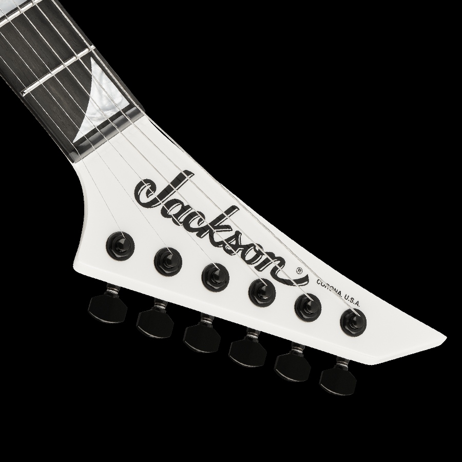リバース6連ペグ式ヘッドストック、マザーオブパールのシャークフィンインレイを備えたJackson RR24 HTは、サウンドだけでなくルックスでも注目を集めます。スピードに特化したシュレッドマシンを求めるなら、これ以上の選択肢はありません。