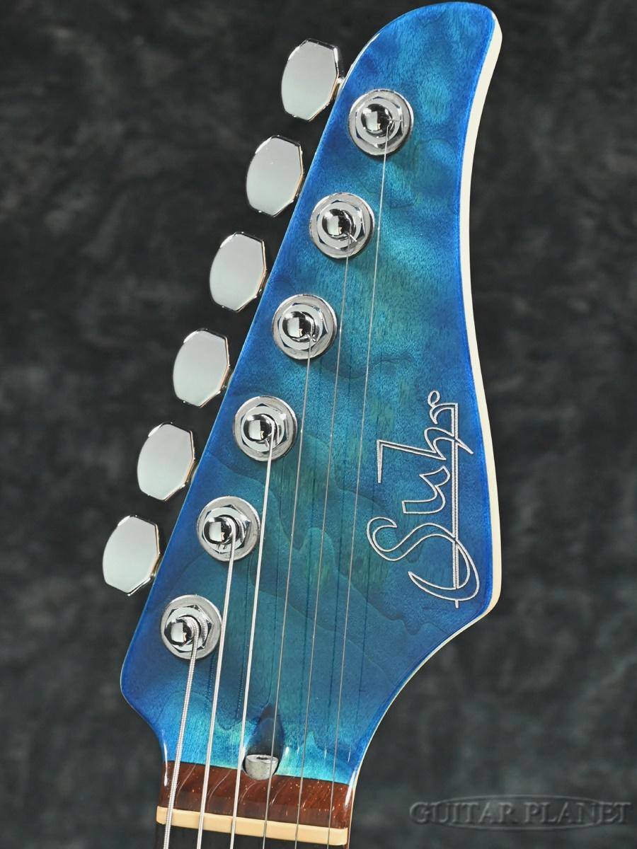 びっしりと詰まった杢目が照り返す水面のように輝く「アクアブルーバースト」のカラーリングに加えて、