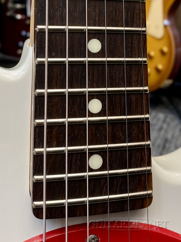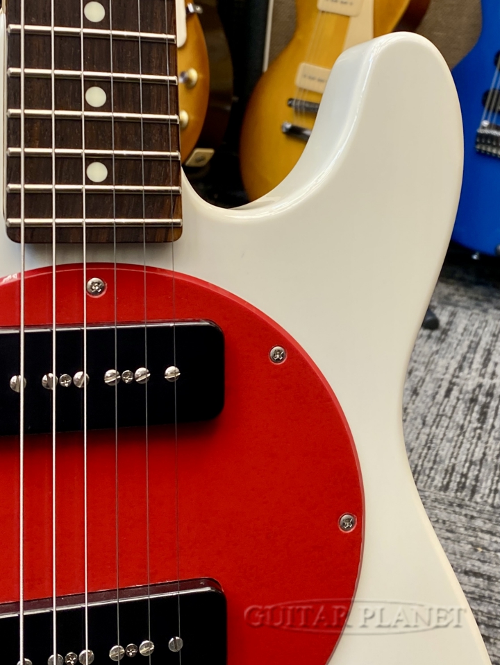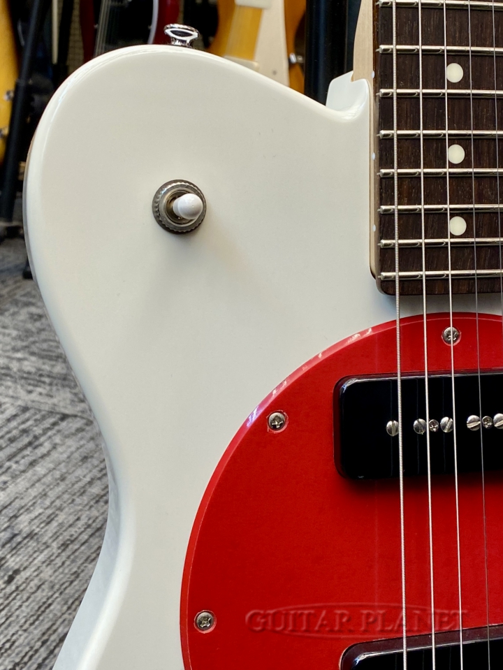 シェイプ自体はトラッドなTLスタイルながら、目を惹く大きな丸いピックガードとカラーは抜群のインパクトを放ちます。