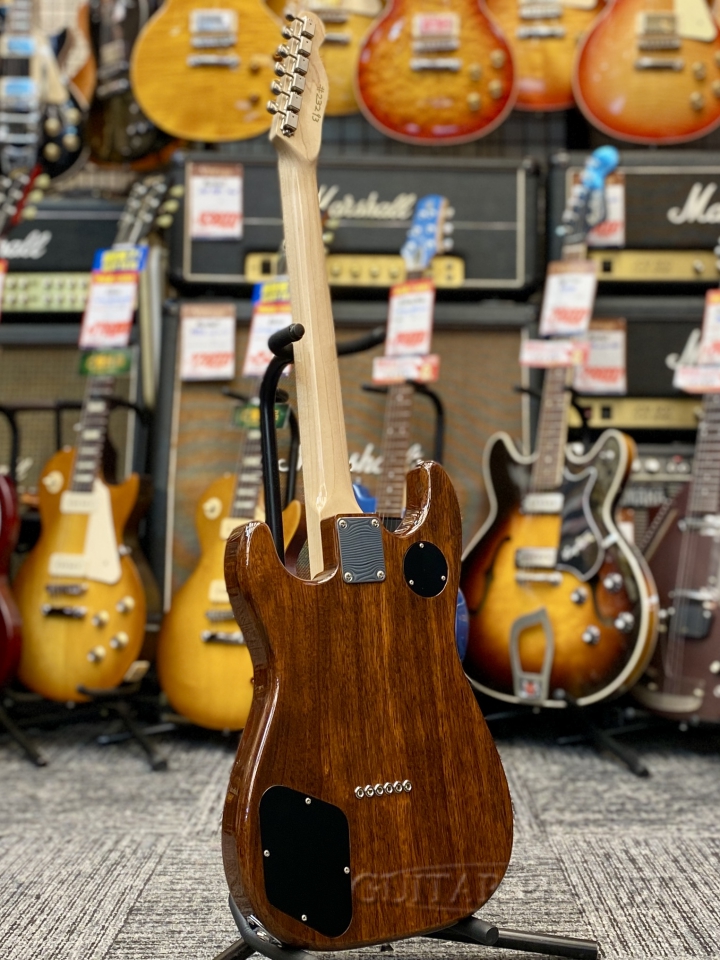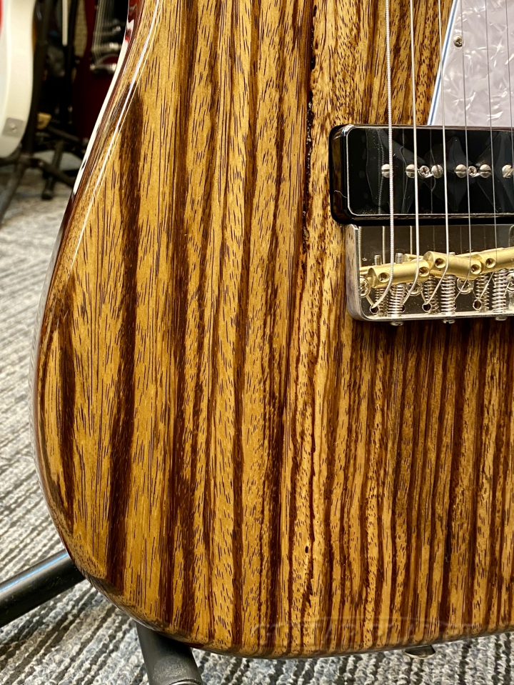 The beautifully grained zebrawood top/teakback body is equipped with a hardtail (non-tremolo) bridge.