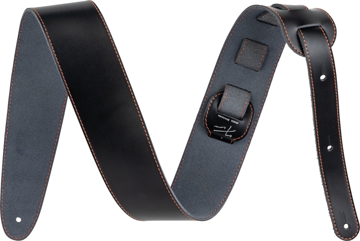 シグネイチャーギターとあわせて使用することを想定して選択されたカラーは、ブラック/オレンジの2色をラインナップ。ブラックにはオレンジ、オレンジにはホワイトの、やや太めで存在感のあるステッチを採用。