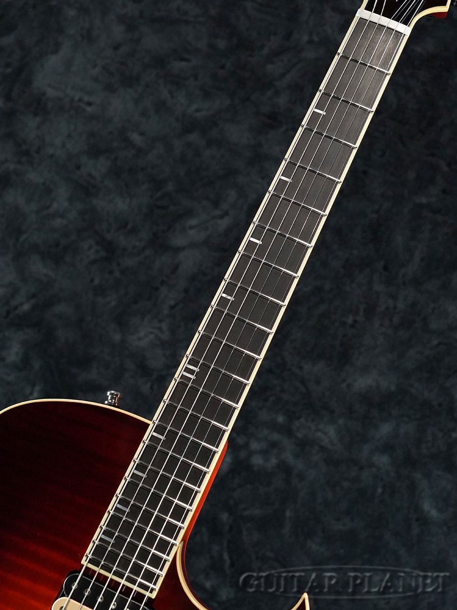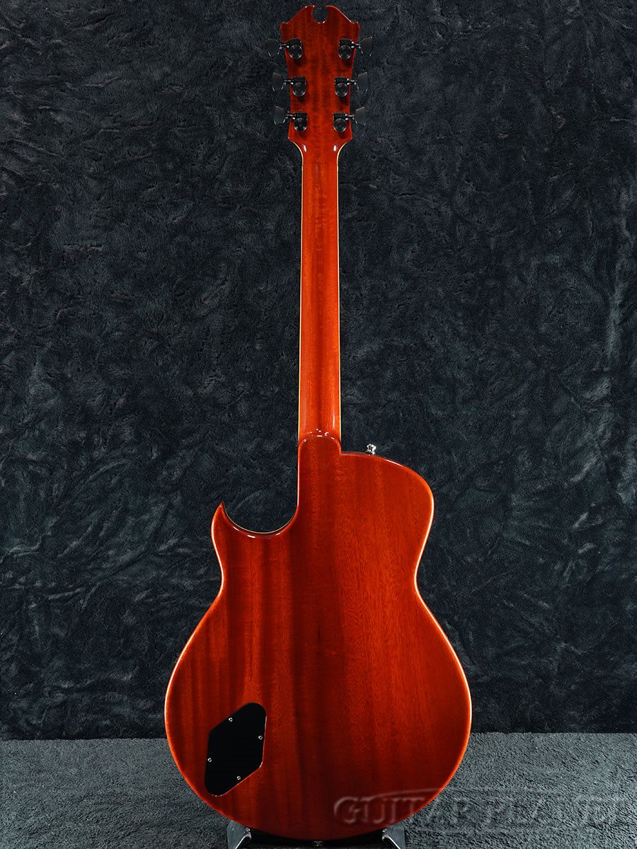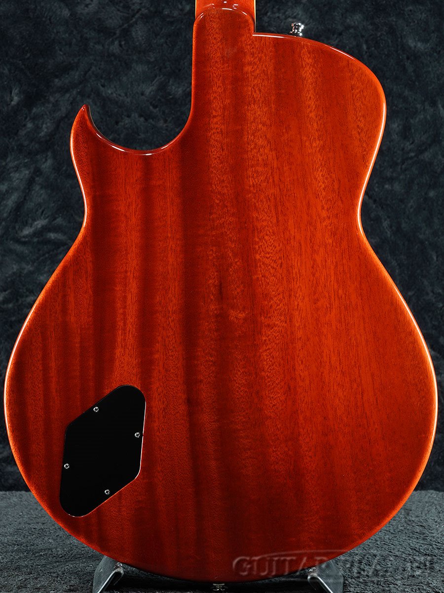 15インチ幅のカーリー・メイプルトップ/マホガニーバックのボディに、エボニー指板を貼り合わせたマホガニーネックがセットネック構造にてジョイントされております。