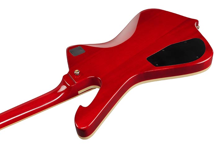 ボディ・トップにはフレイム・メイプル材を、ボディにはマホガニー材に似た、ふくよかなあたたかみのあるローミッド・サウンドが特長のオクメ材を採用しています。
