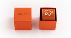 ●本人がデザインしたアイコニックな蝶のイラストとサインを箔押しによって刻印