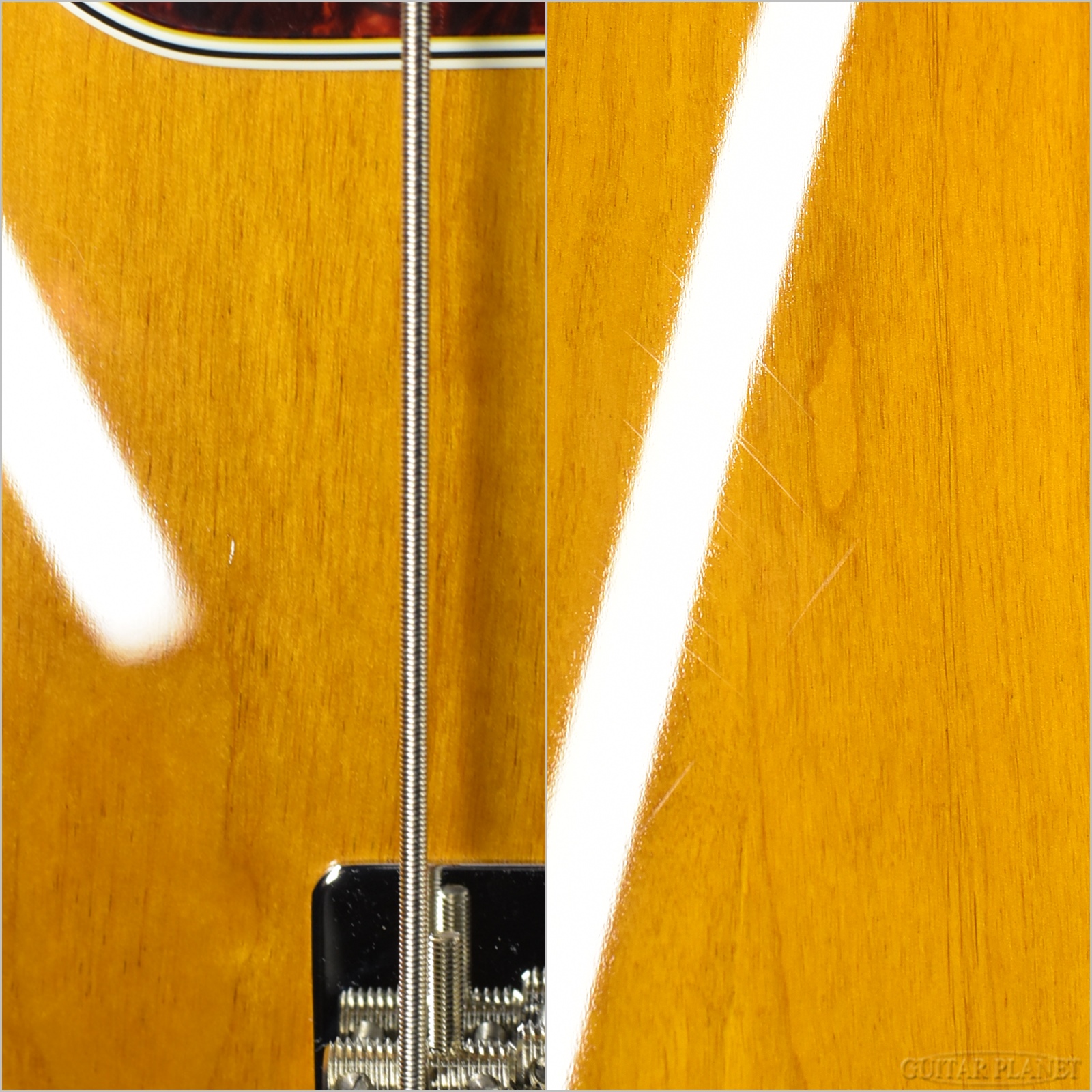 アルダーの色味と相性の良いヴィンテージ・イエロー・ナチュラルのカラーリングにより味わい深い佇まいを有し、ボディもニトロセルロースラッカー塗装となっておりますので、これからじっくり弾き込んでいくのも楽しみでございます。