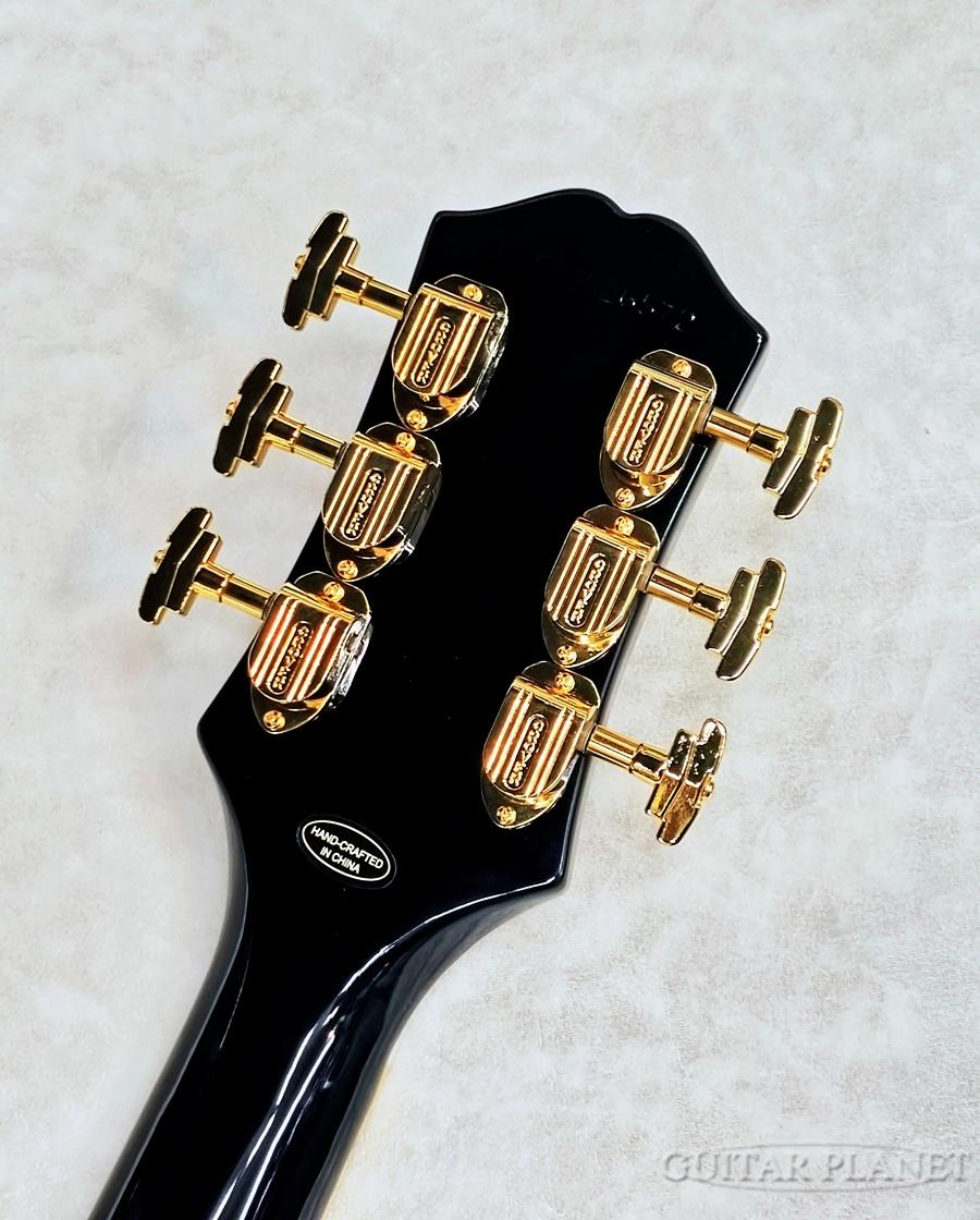 60年代カラマズースタイルのヘッドストックはマルチプライ・バインディングが施され、マザーオブパールによるエピフォンロゴとカスタム・スプリット・ダイヤモンド・インレイが入れられ、さらにGraph Tech製の低摩擦ナットを採用することで高いチューニングの安定性を実現しています。