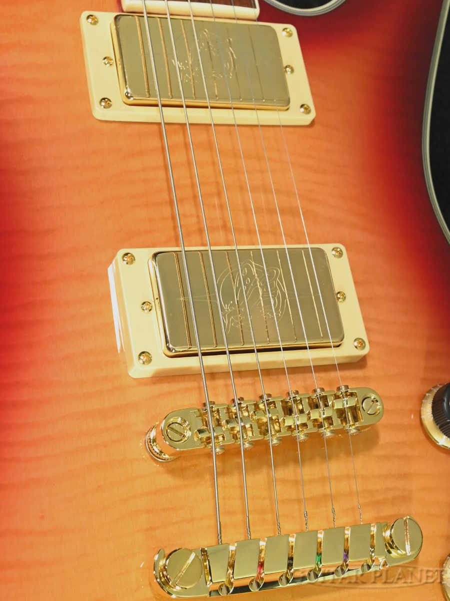 ボディ・トップにはフレイム・メイプル材を、ボディにはマホガニー材に似た、ふくよかなあたたかみのあるローミッド・サウンドが特長のオクメ材を採用しています。