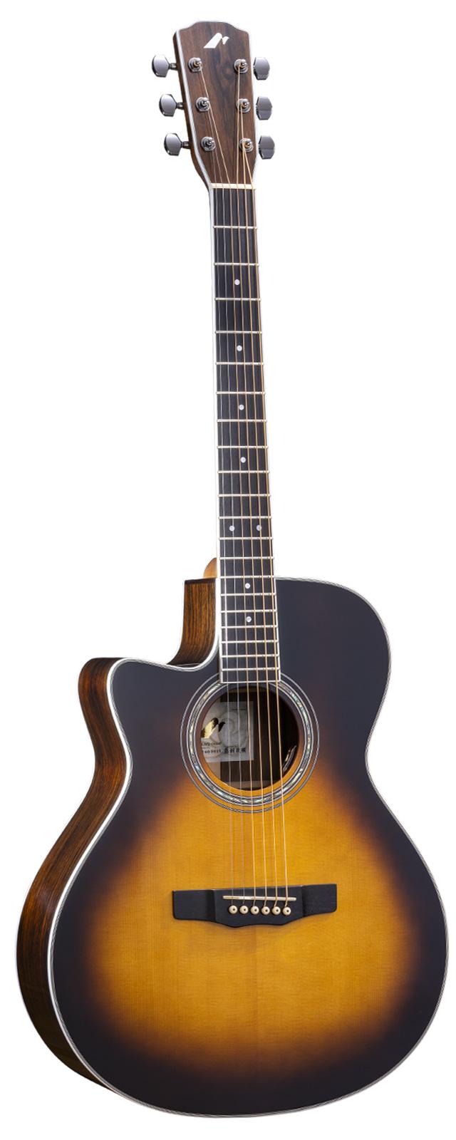 ステージ・パフォーマンスに最適なエレアコとして人気のエレアコR-14Gのレフトハンドモデル。