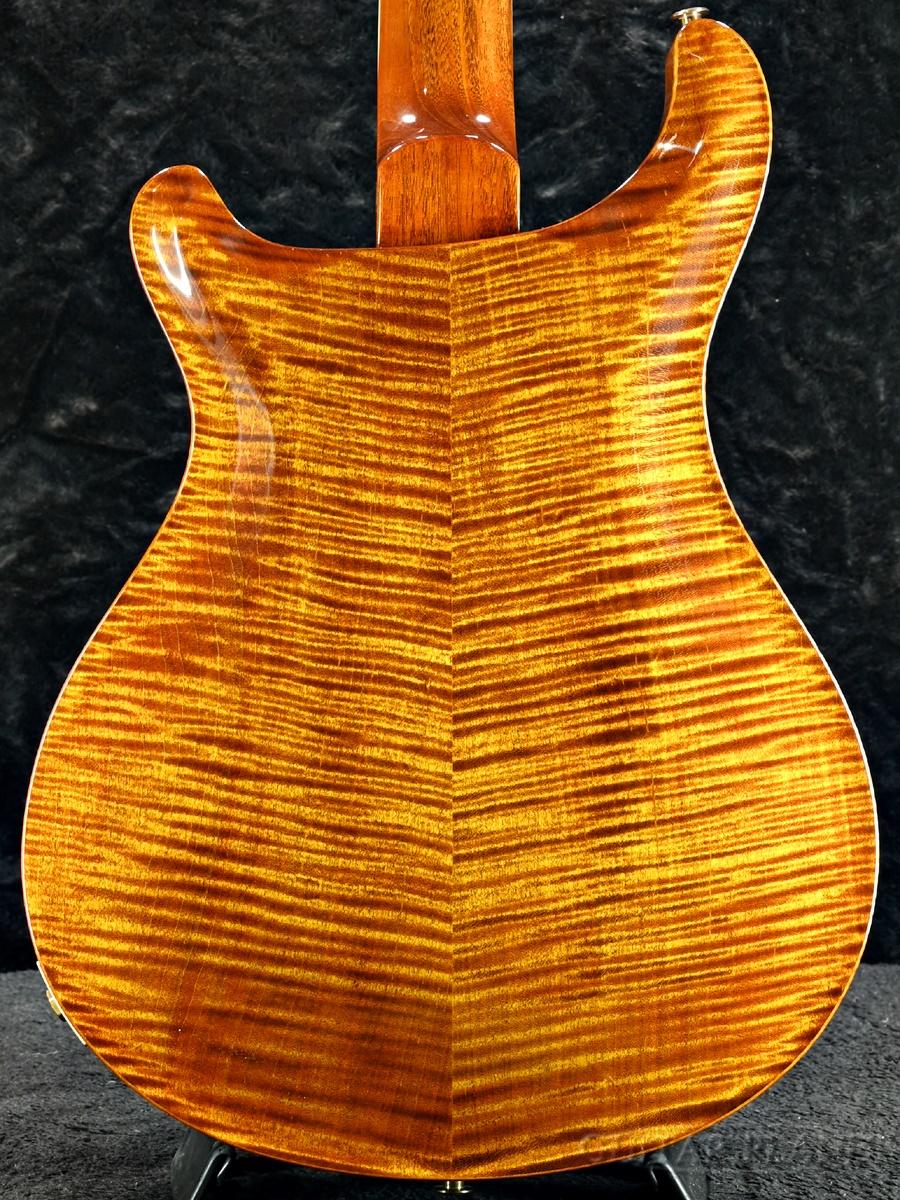 トップはやや太めの杢がこれでもかとぎっしり詰まっており、まさに「正統派」な良杢。ホーンの先からボディエンドまで隙がありません。バックもこれまた見事で、ややV字を描くフレイムを背負う様子はまるで翼をたたえた鳥のよう。