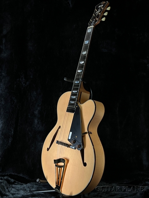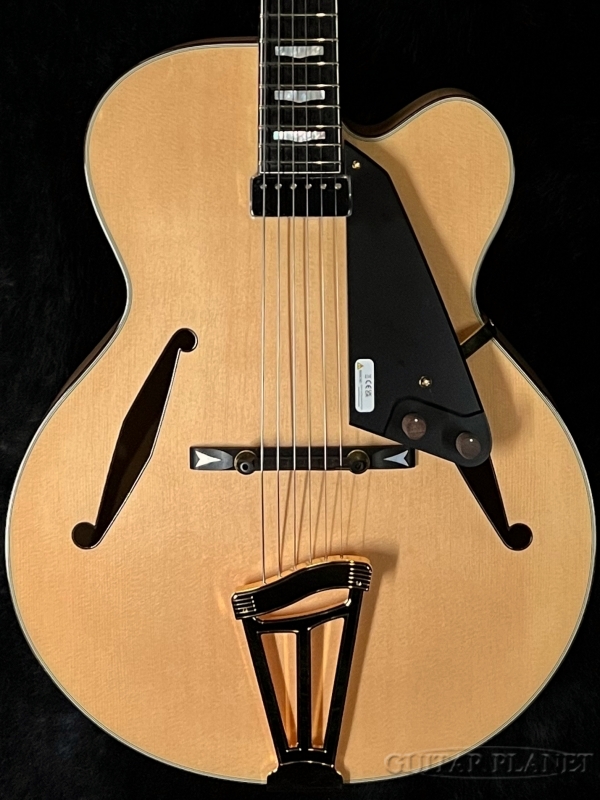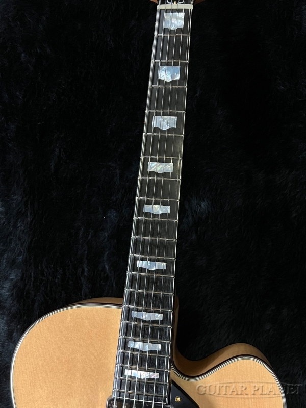 この度入荷致しました「MFA-FP」は、ラインナップの中でも最高峰に位置するフルアコースティックモデルで、「Gibson Johnny Smith」や「Le Grand」ライクなルックスが特長のフローティングPUを採用しております。