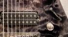 トップ材にキルトメイプルの化粧板を配置し、杢目の美しさが際立つBlack Iceカラーの個体です。