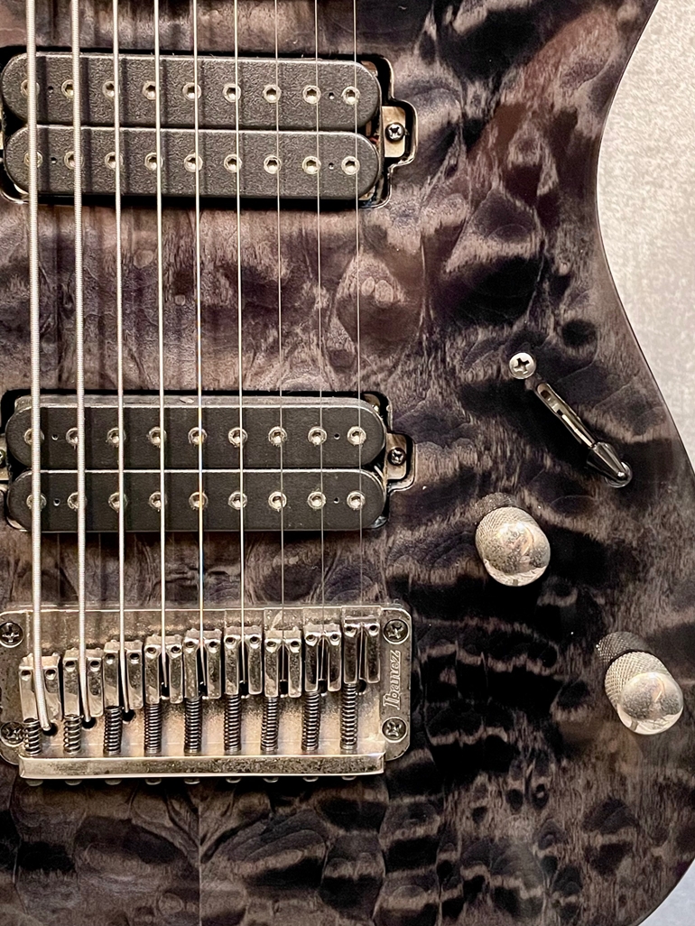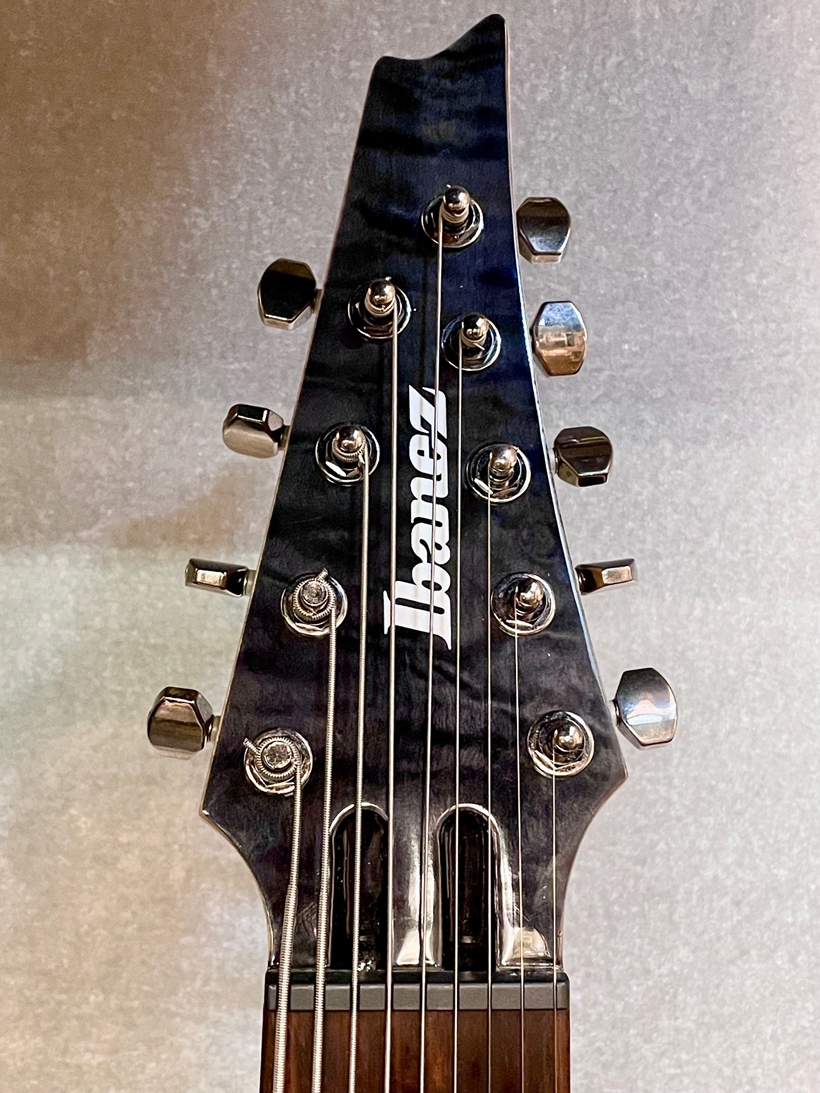 The model we've just received is the RG9QM, a 9-string instrument delivering deep bass tones down to low C#.