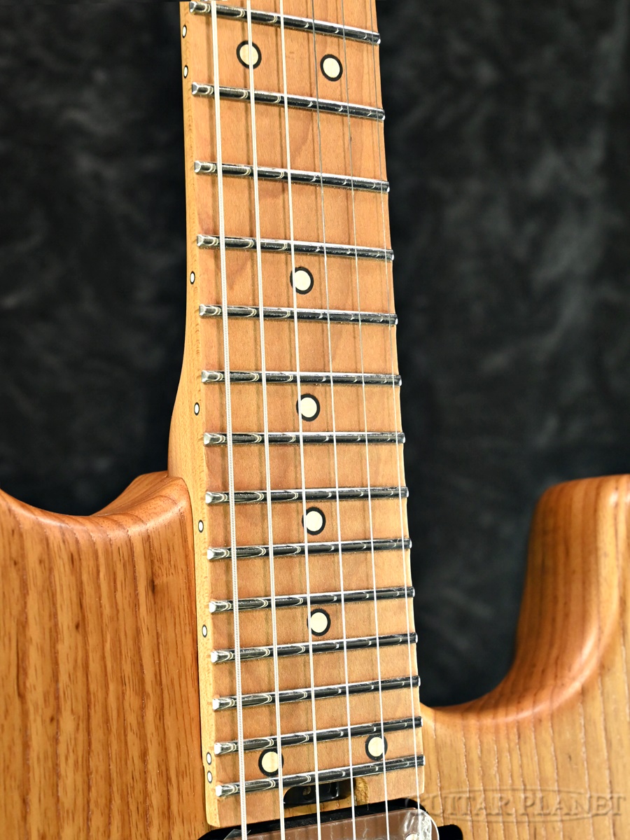 燻製処理が施されたアッシュボディがまるでアンティーク家具の様な雰囲気を感じさせ、アッシュ材らしい力強い杢目が際立つ品です。