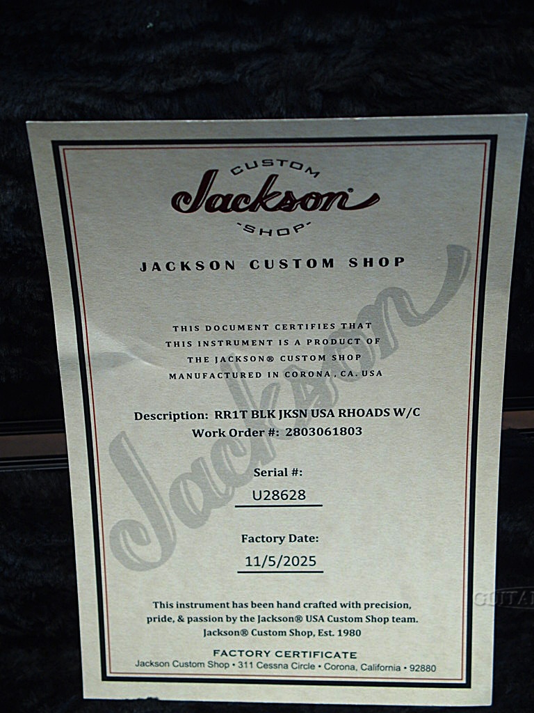 ネックシェイプはJacksonらしい薄く仕上げられた握り心地を持ち、素早いポジション移動の際も滑らかに行えます。