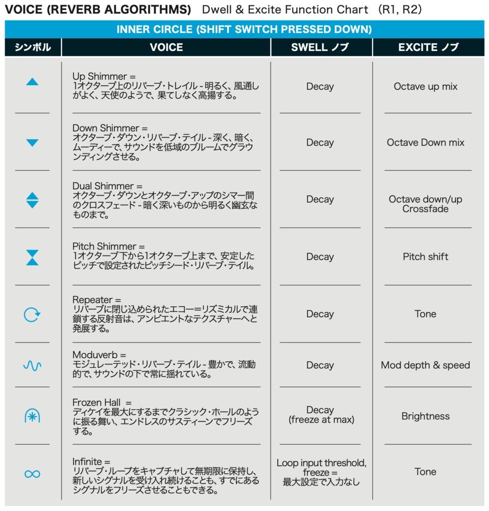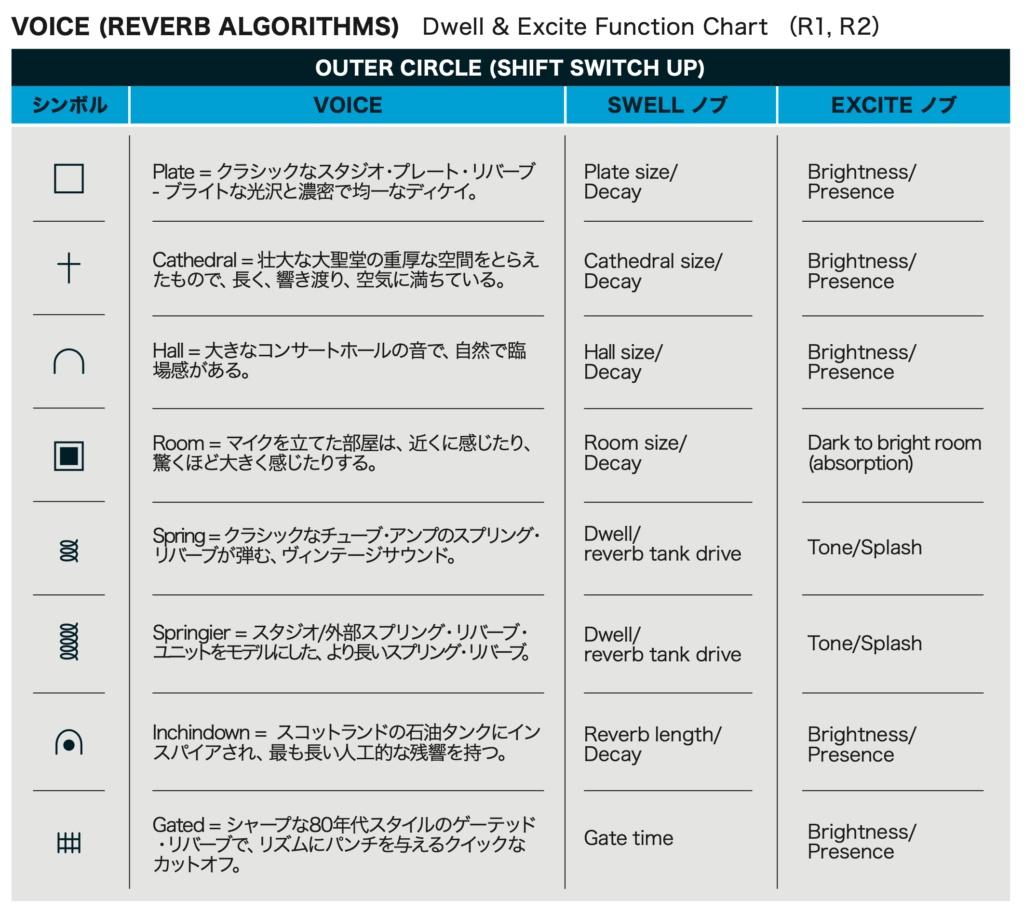 • 計16種類のアルゴリズムを直感的な2バンクに分類:ビンテージ/クラシックとアンビエント/実験的。