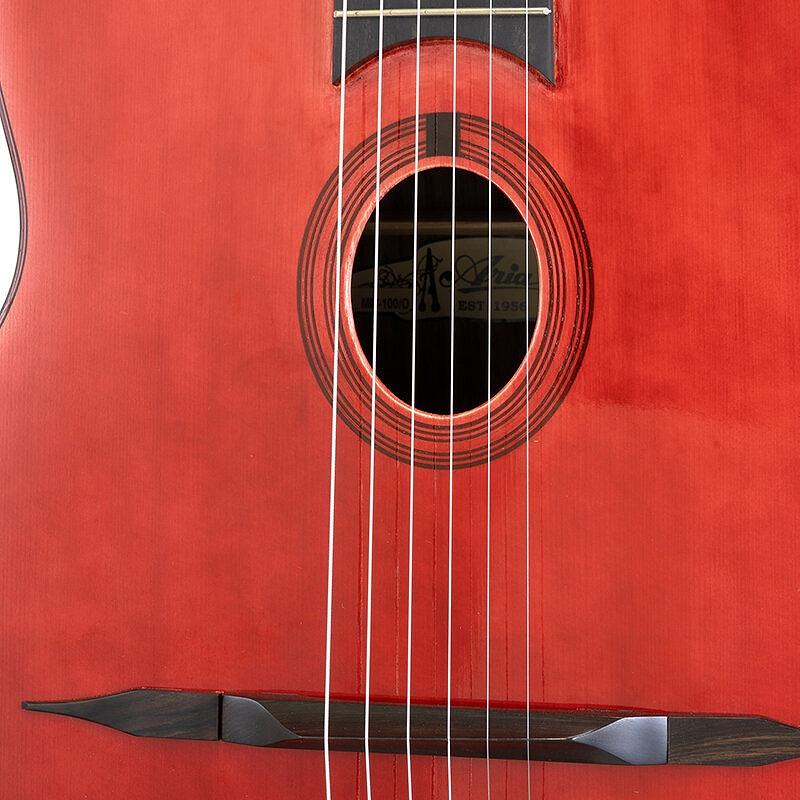 MM-100のブレーシングには通称「ジャンゴ・ブレーシング」と言われる通常より1本力木の少ないスタイルを採用しています。