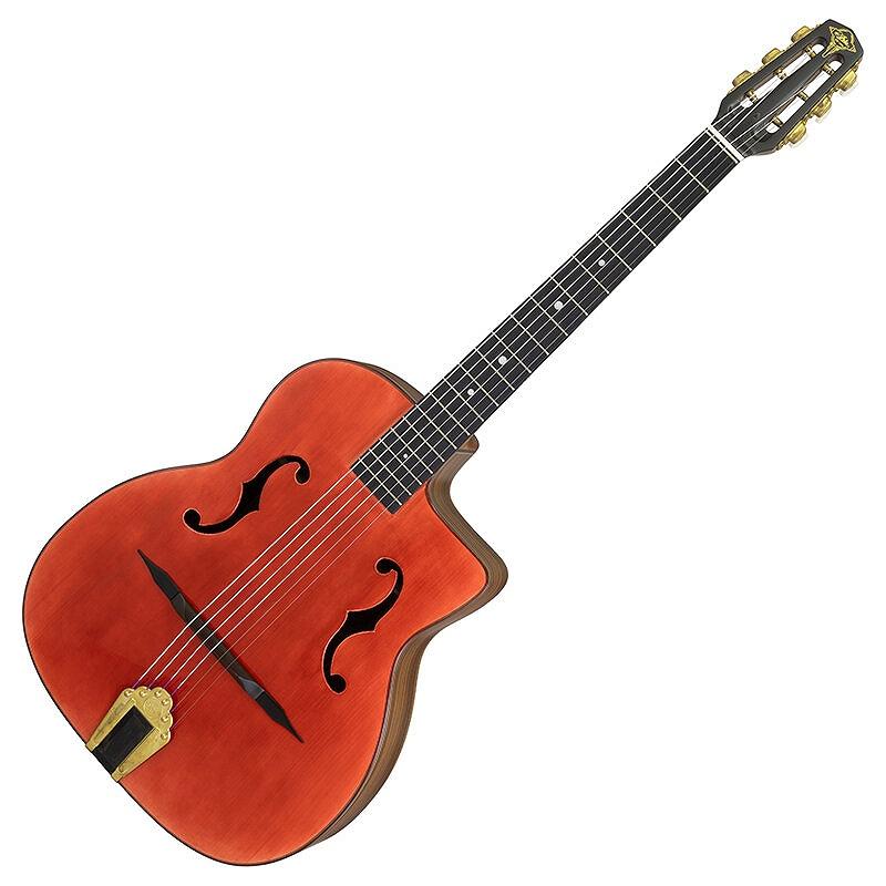 今なお高い人気を誇る偉大なギタリスト、ジャンゴ・ラインハルトにより広められたマカフェリスタイルギター。