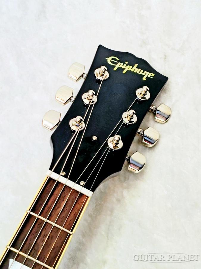 メイプルキャップのマホガニーボディ、ロングネックテノンとジェフベックカスタムラージCネックプロファイルを備えたワンピースマホガニーネック、22ミディアムジャンボフレットとエイジドマザーオブパールの台形インレイを備えたローズウッド指板、エイジドマザーオブパールのEpiphoneロゴがインレイされたギブソン「オープンブック」スタイルのヘッドストックが特徴。