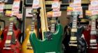 Damage: Scratches/dents, paint cracks/chips, neck paint loss/gloss, dull parts/rust/discoloration, pickguard warpage (tremolo block spacer missing)