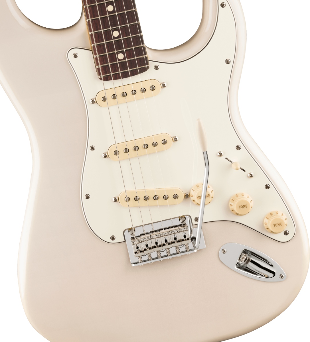 アルダーボディ、チェンバードアッシュボディ、チェンバードマホガニーボディのトーンウッドオプションが用意されたPlayer II Stratocasterは、伝統的なフェンダーフィニッシュ、またはフェンダーのカラーアーカイブから発掘され、本シリーズで初採用となる新フィニッシュなど、幅広いカラーの選択肢をご用意しています。Player Series Alnico V Single-Coil Stratピックアップからはクリスタルのように澄み渡ったハイエンド、音楽的なミッドレンジ、そしてタイトなローエンドが得られます。5ウェイブレードスイッチにより、多彩なサウンド設計が可能です。2点支持トレモロと、ClassicGearチューニングマシンによりチューニングの安定性とより豊かな表現力が確保され、無限のサウンドの可能性を追求できる柔軟性を備えています。