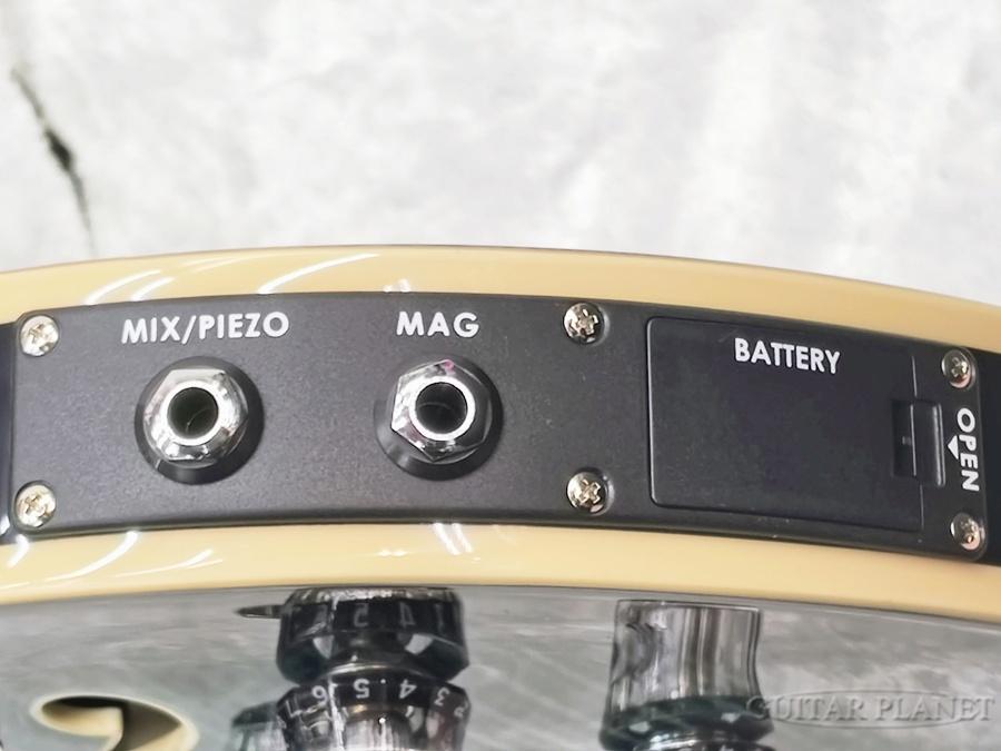 ピエゾピックアップとマグネティックピックアップそれぞれに対応するボリュームを操作する事でブレンド可能、
