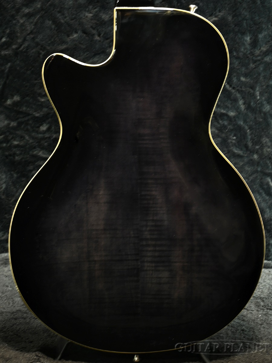 ラミネイト・スプルーストップ、フレイム・メイプルサイド&バックのボディに、ローズウッド指板を貼り合わせたメイプルネックがセットネック構造にてジョイントされております。