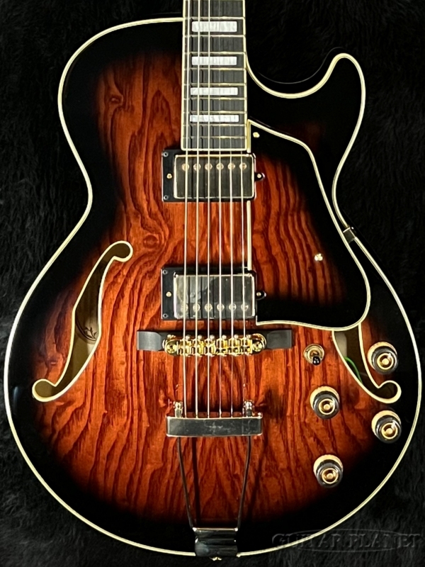 ナット幅約43mm、GB10(George Benson Signature model)にも通じる若干小振りなシェイプのボディは抱えやすく高い演奏性で、フルホロウ構造独特な王道のジャズトーンをお楽しみ頂けます。