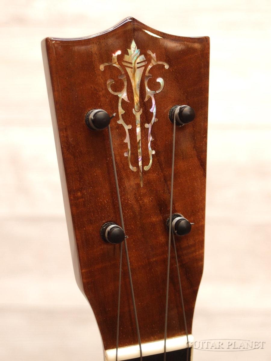 まるで宝石のような存在感、輝きを放つウクレレで、最高グレードのハワイアンコア材(トップ、バック材には1ピースの無垢材を使用)と、アバロンパールを使用したインレイ装飾は、一目で最高のウクレレである事が判ります。