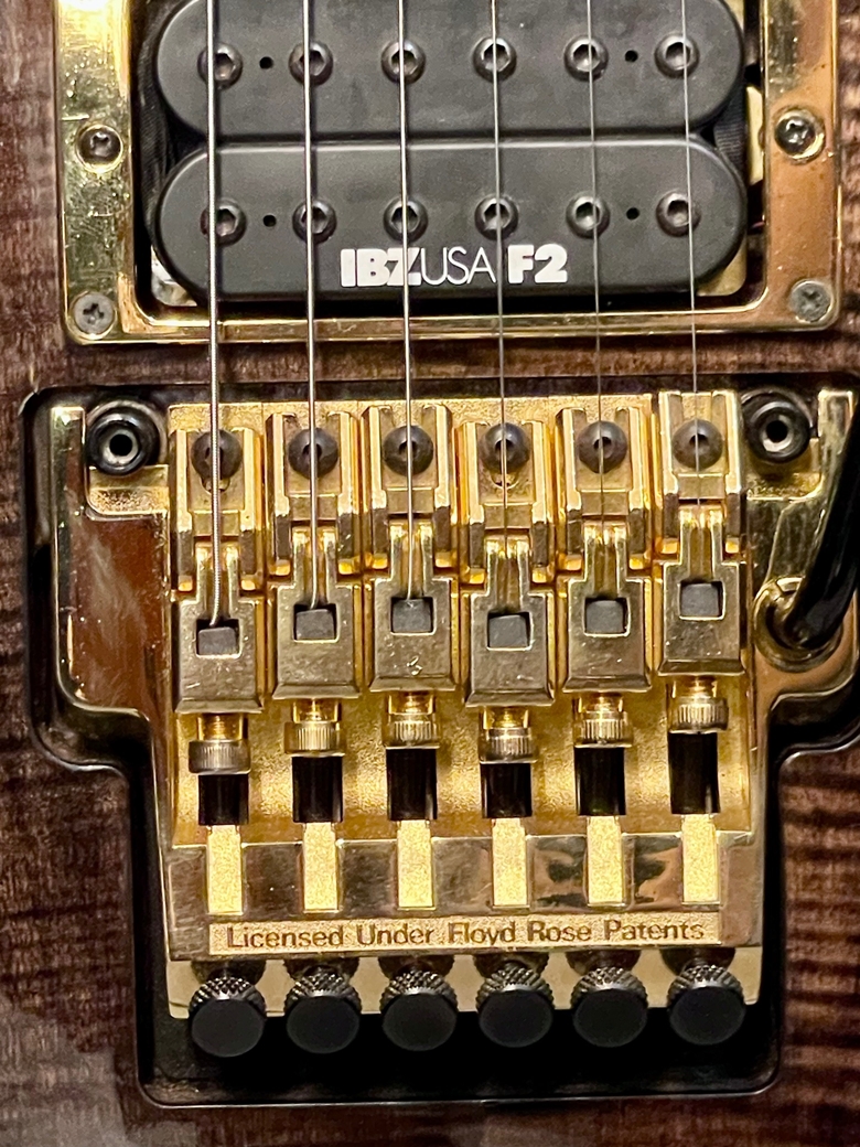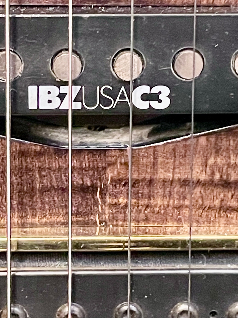 Pickups feature the original IBZ/USA F1 and IBZ/USA F2 humbucker models, with the center position housing the single-coil IBZ/USA C3.