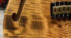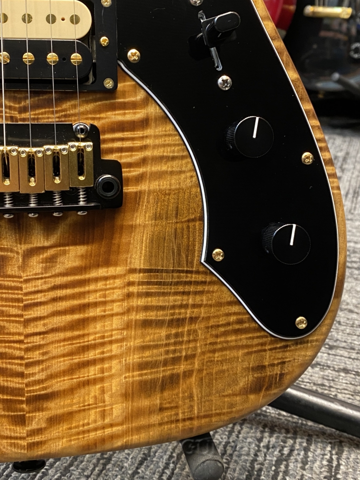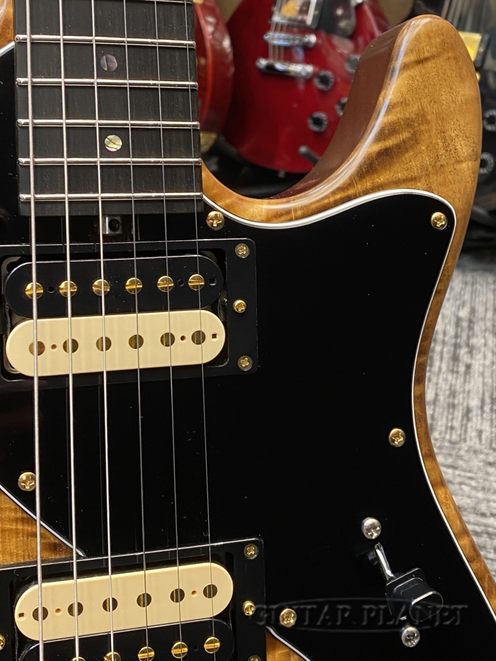 ブラックとゴールドのハードウェアをミックスし、ゼブラボビンのピックアップと相まって絶妙なゴージャスさを演出、トップ材の迫力ある杢目が印象的な個体です。ご興味をお持ちの方はどうぞお見逃しなく!