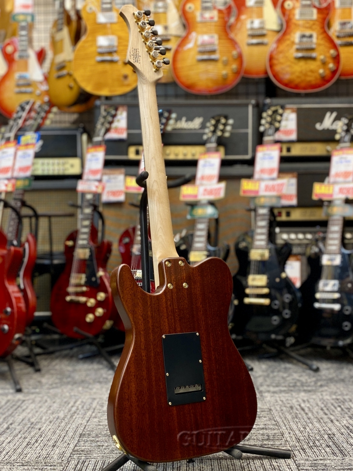 サテン仕上げで握り心地の良いCシェイプのグリップにエボニー指板、22フレットのネックと、トチトップ、マホガニー・ホローボディのボディの組み合わせ。ハワイアンコアの色合いをイメージしたブラウンにフィニッシュされています。