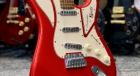 Three single-coil pickups are mounted in an ST-style double-cutaway body.