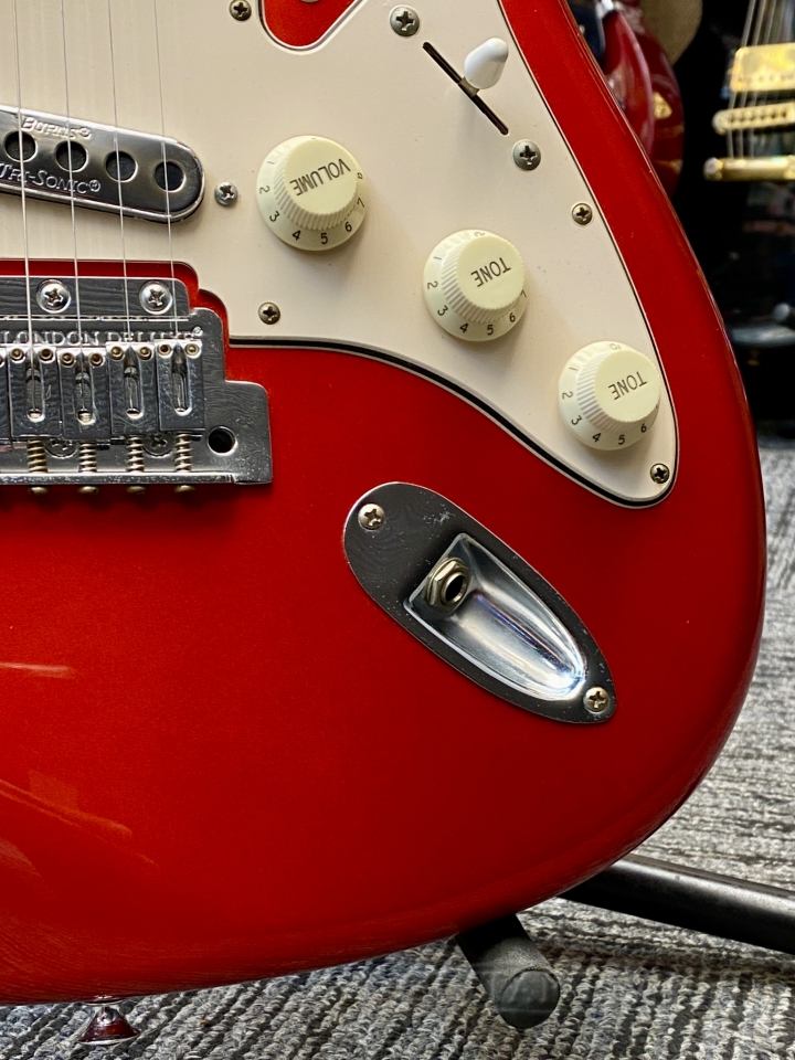 The unique pickguard design that covers the entire body gives it a unique flair that's different from American or Japanese guitars.