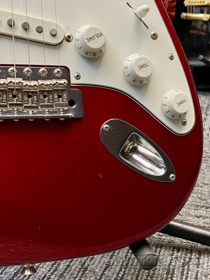 ラウンドローズ指板にキャンディアップルレッドのボディフィニッシュの組み合わせが格好良いです。どうぞお見逃しなく!