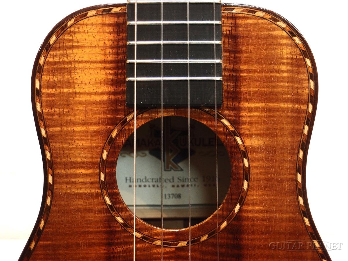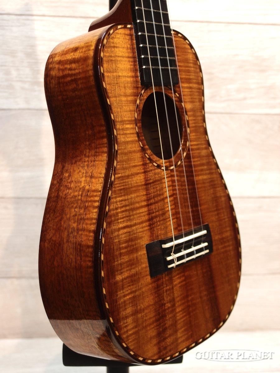 美しい杢目のハワイアンコア、ロープバインディング装飾がハイグレードモデルである象徴になっており、スタンダードモデルと異なる特徴は、Low-Gチューニングの際のバランスを考慮した設計にあります。