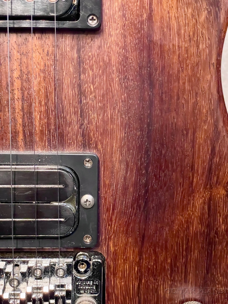 木材構成はパドゥークボディ、パドゥークネック、エボニー指板からの組み合わせを採用。