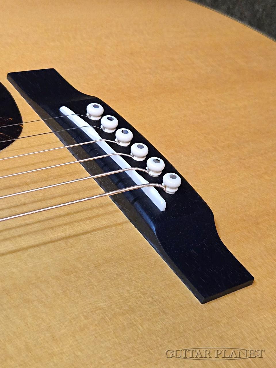従来の000-28ECの特徴であったブリッジ部での弦幅の広さは変わらず健在で、指弾きの際の右手の収まりが良くフィンガースタイルでの演奏に特におすすめの一本です。