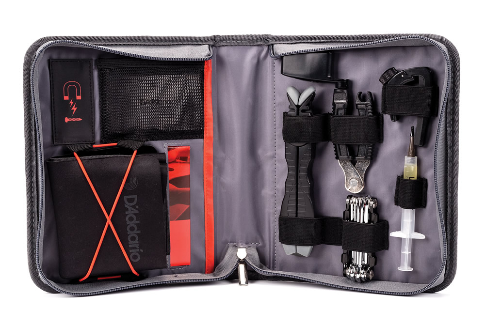 専用の収納ケースには、ペグワインダー&ニッパーやヘッドスタンド、ポリッシュクロスやメンテ用マットにマルチツールなど、便利なツールが全て詰まっています。