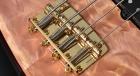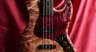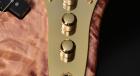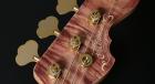 主張の強い木目を生み出すバール栃と、木目の魅力を存分に活かす赤との組み合わせをコンセプトに置いて制作された本機は、マッチングヘッドトップ、カラーはもちろん、ボディバックも濃い赤、特注のピックガードも赤みを帯びた色彩で纏めていますが、それぞれの箇所の赤の彩度や明度が異なり、様々な雰囲気の赤がバール栃の木目の魅力を存分に押し出しています。