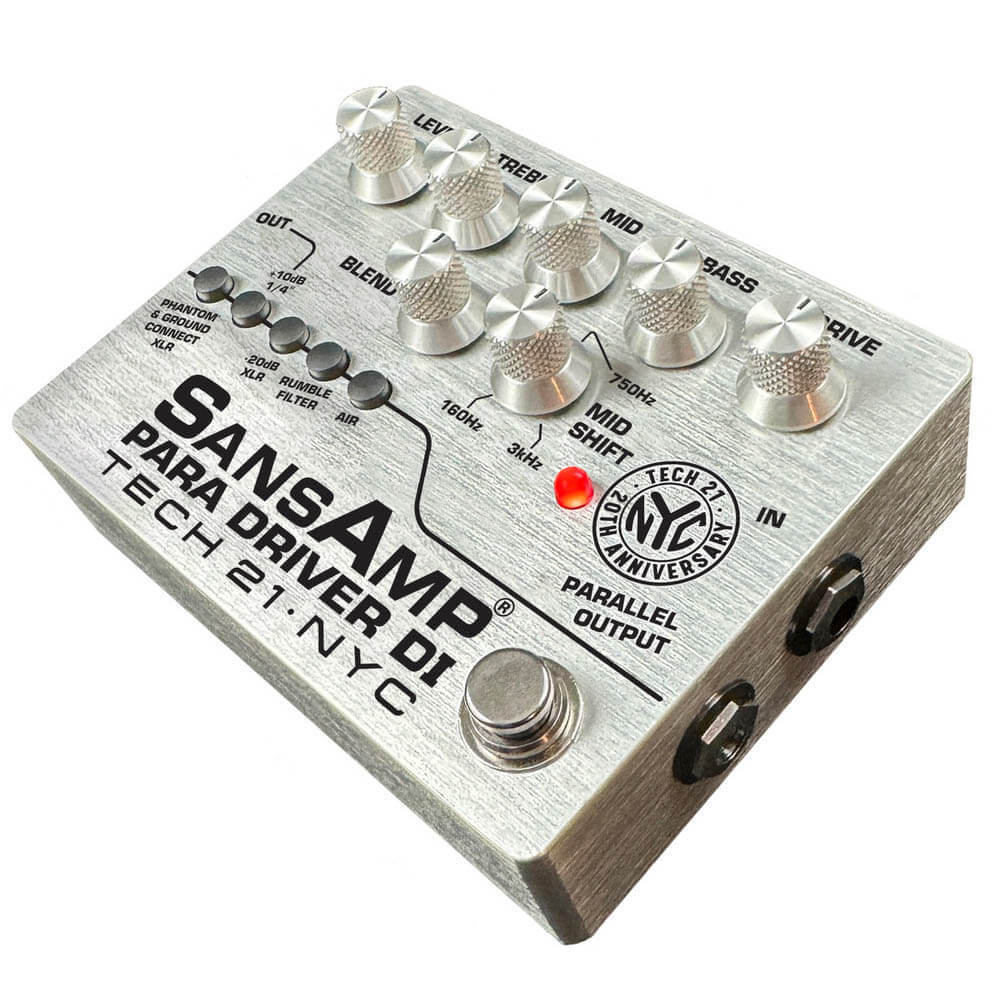 Tech 21 「SansAmp Para Driver DI」の発売20周年を記念した、世界限定500台のアニバーサリーモデル。精密削り出しアルミニウム製ハウジングとメタルノブを採用した特別仕様です。2005年に誕生した Para Driver は、アコースティックギター、ベースはもちろん、ウッドベースやバイオリンなど幅広い楽器に対応する万能DI/プリアンプ。独自のSansAmp回路により、自然な倍音と豊かなチューブアンプライクなサウンドを実現します。3系統の出力端子や幅広いEQコントロールを搭載し、レコーディングからライブまであらゆるシーンで活躍。長年愛され続ける定番ペダルが、限定仕様で新たな魅力をまとい登場します。
