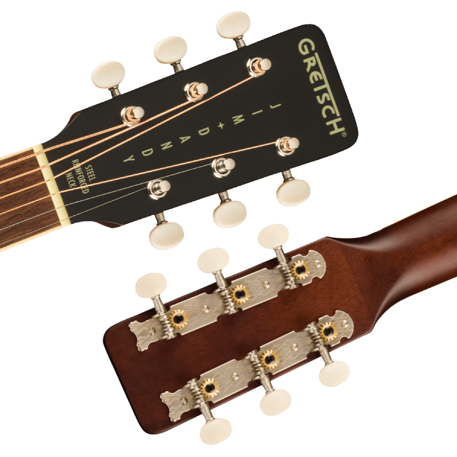 1930年代、40年代、50年代に販売された歴史的なGretsch "Rex"アコースティックギターからインスパイアされたJim Dandyモデルは、Gretsch初期のフラットトップギターの魅力とスピリットを体現し、優れた演奏性とクラス最高級のトーンを備えています。