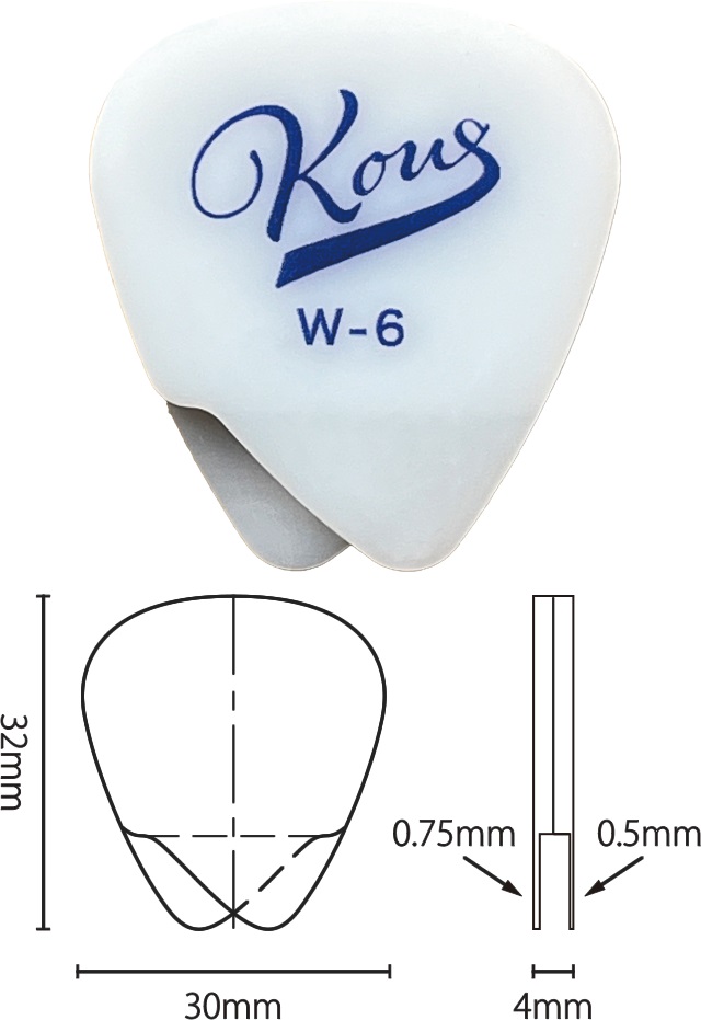 厚さ、形状の違うフラットピック2層を特殊技術で重ねた「Kous W-6 レイヤードピック」