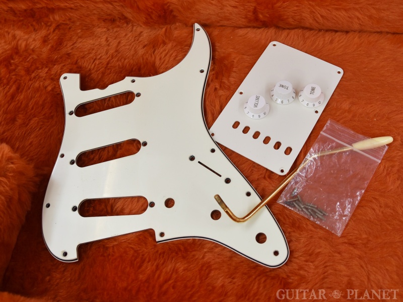 サドル芋ネジ1箇所交換。傷や打痕、金属パーツの錆、ボディフィニッシュにクラック、 ピックガードとバックパネルに歪み縮みが確認できる等強い使用感がございますが通常使用に於いて問題はなく、