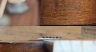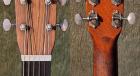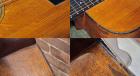 トップ、サイド、バックの割れを修正及び埋め、オーバーラッカー、ヘッドデカール張り替え、ネックヒールストラップピン増設、ピックアップ取付歴によるエンドピン拡張が見られます。拡張部分は現在はコンバージョンピンで埋めています。